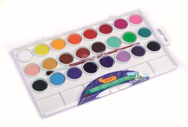 24ks odtieňov vodových farieb v balení na plastovej podložke zn. Jovi, vhodné na maľbu na papier a iné savé materiály.